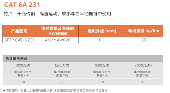 彎曲半徑                :     非拖鏈內(nèi)運動:5.0X電纜外徑