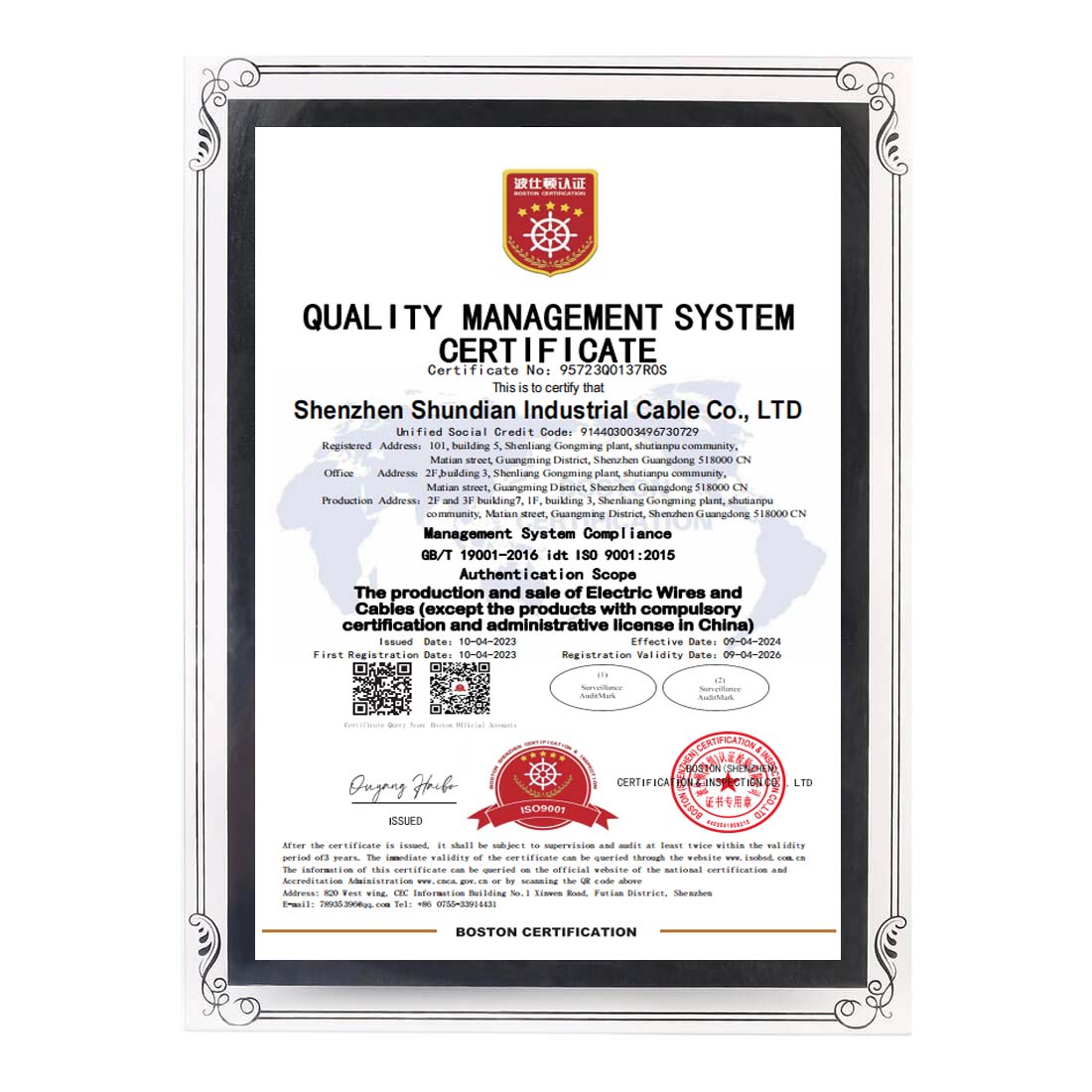 質(zhì)量管理體系認(rèn)證證書-中文
